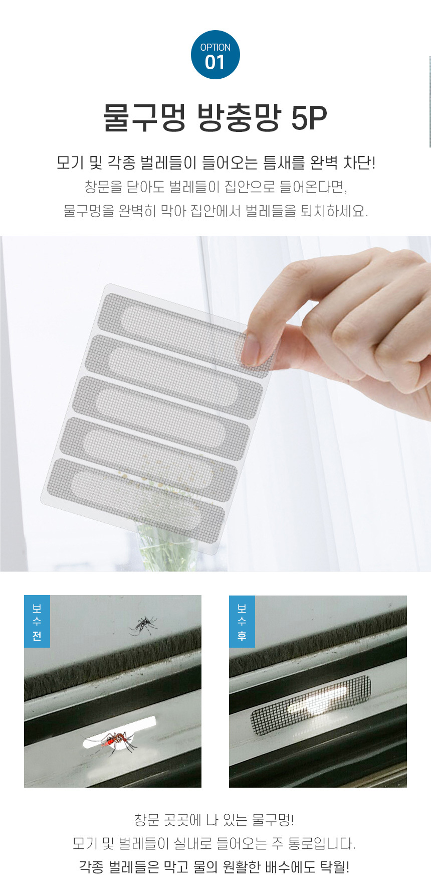 방충망 간편보수 벌레차단 창문 물구멍차단